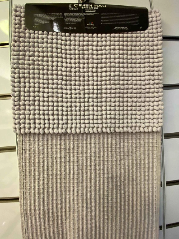 İki parçadan oluşan banyo paspası seti, banyolarınızda hem konforu hem de güvenliği bir arada sunar. Büyük ölçülü paspas (60 × 100 cm) duş veya küvet önünde geniş bir kullanım alanı sağlarken, küçük paspas (60 × 50 cm) lavabo veya WC önü için ideal ölçüdedir.