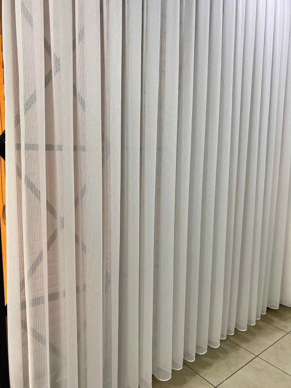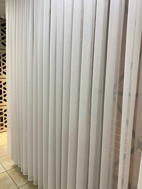 Tül üzerindeki ince dikey çizgi dokusu, perdeye hafif bir hareket ve zarafet katarken mekânı olduğundan daha yüksek ve ferah gösterir. Işığı nazikçe süzer, gün ışığını dengeli şekilde içeri alırken mahremiyeti de korur.