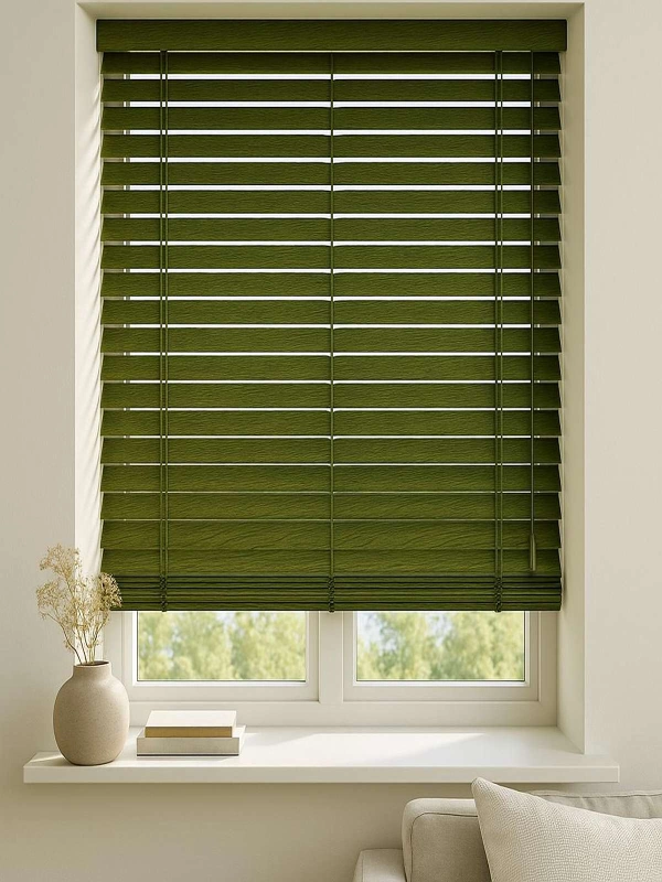 50 MM Altın Yansımalı Zeytin Yeşili Ahşap Jaluzi Perde