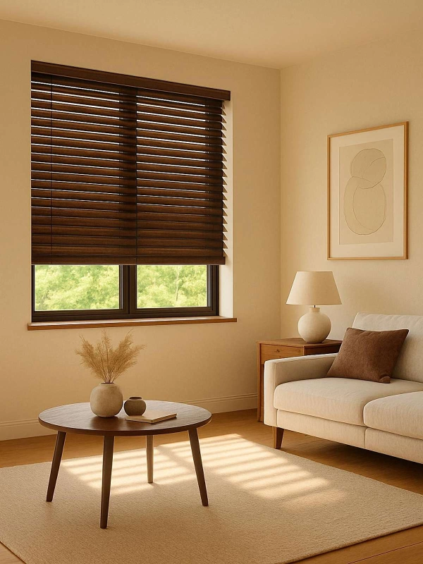 50 MM Koyu Kahverengi Ahşap Jaluzi Perde