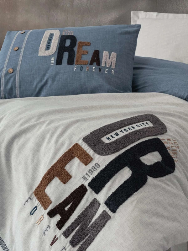 Cotton Box Mood Nakışlı Tek Kişilik Nevresim Takımı Forever Gri