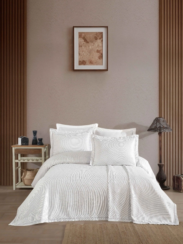 Cotton Box Çift Kişilik Yatak Örtülü Pike Takımı Natura Vilo Bej